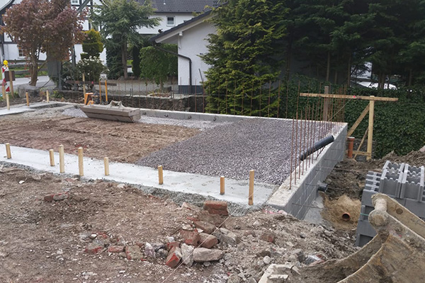 Unsere Leistungen im Betonbau umfassen Stützmauern mit dazugehöriger Statik, sowie die Erstellung von Bodenplatten und Fundamenten nach Ihren Bedürfnissen und Vorgaben.