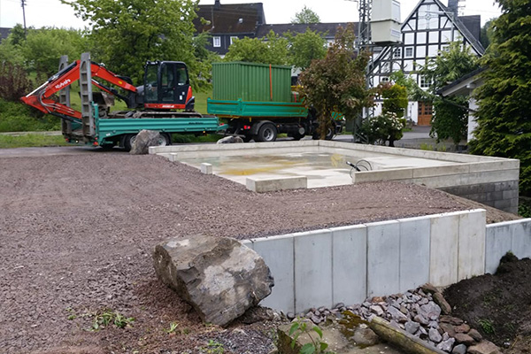 Unsere Leistungen im Betonbau umfassen Stützmauern mit dazugehöriger Statik, sowie die Erstellung von Bodenplatten und Fundamenten nach Ihren Bedürfnissen und Vorgaben.